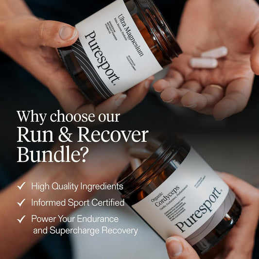 Run and Recover Bundle | 1 X Ultra Magnesium (90 Capsules) & 1 X Cordyceps (60 Capsules) | Supports Recovery, Sleep & Aerobic Efficiency | Boosts Cardiovascular Health | Vegan Friendly