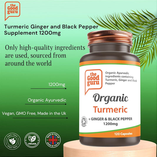 Organic Turmeric Ginger and Black Pepper Supplement 1200Mg- 120-Capsules